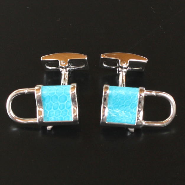 【送料無料】【Babette Wasserman】ブルーレザー&南京錠 カフス 【カフスボタン・カフリンクス】xmas2009xmas 【formal】お買い物マラソン1215more10【お買い物