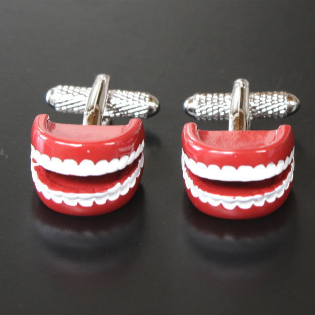 入れ歯をモチーフにしたユニークなカフスボタン。袖口から覗くユニークなカフスボタンに注目が集まりますよ♪自分用としてはもちろん、プレゼントとしても大変喜ばれますよベースカラーーシルバー素材ークロームサイズー12x15mm【カフス・カフリンクス】 ※ケースは写真と異なる場合がございます。