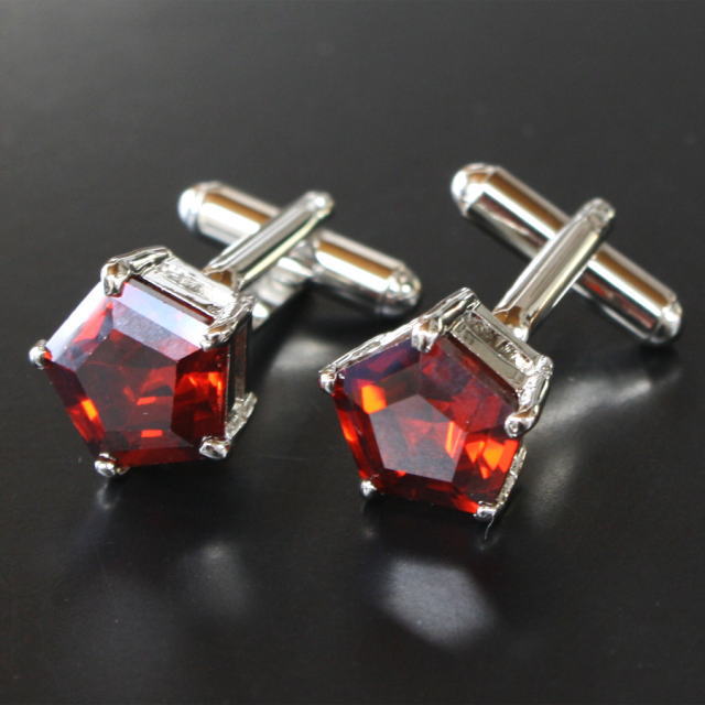 ガーネットカラーのクリスタルを使用したスタイリッシュなカフスボタン。袖口から覗くスタイリッシュなカフスボタンに注目が集まりますよ♪♪自分用としてはもちろん、プレゼントとしても大変喜ばれますよベースカラーーシルバー素材ーbrass(真鍮)サイズー18x18mm【カフス・カフリンクス】 ※ケースは写真と異なる場合がございます。