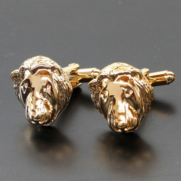 ライオンの顔をモチーフにしたユニークなカフスボタン。色もゴールドでゴージャス仕上げ!袖口から覗くユニークなカフスに注目が集まりますよ♪自分用としてはもちろん、プレゼントとしても大変喜ばれますよベースカラーーゴールド素材ー真鍮・ロジウムコーティングサイズー19x18mm