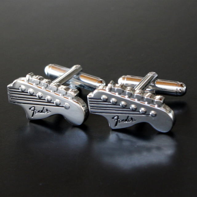 ギターのエンド部分をモチーフにしたユニークなカフスボタン。フェンダー社公認のロゴ入りですよ。♪袖口から覗くユニークなカフスボタンに注目が集まりますよ♪自分用としてはもちろん、プレゼントとしても大変喜ばれますよベースカラーーシルバー素材ークロームサイズー12x23mm【カフス・カフリンクス】 ※ケースは写真と異なる場合がございます。