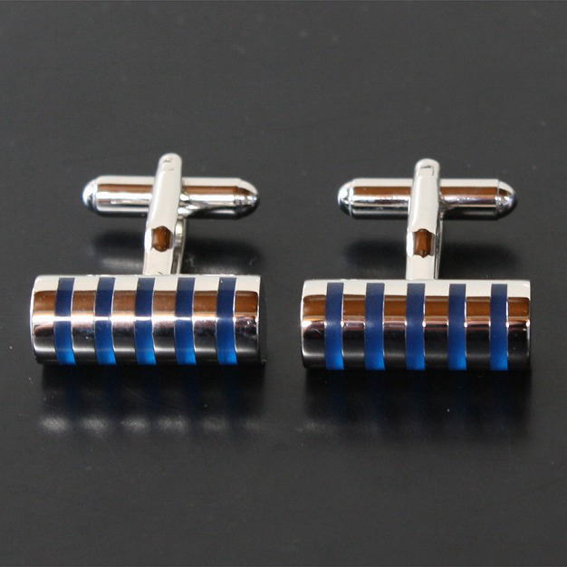 筒状のデザインにブルーのラインの入ったクールな仕上がり。袖口から覗くスタイリッシュなカフスに注目が集まりますよ。自分用はもちろん、プレゼントとしても喜ばれます。ベースカラー?シルバー素材?真鍮・ロジウムコーティングサイズ?8x21mm ※ケースは写真と異なる場合がございます。