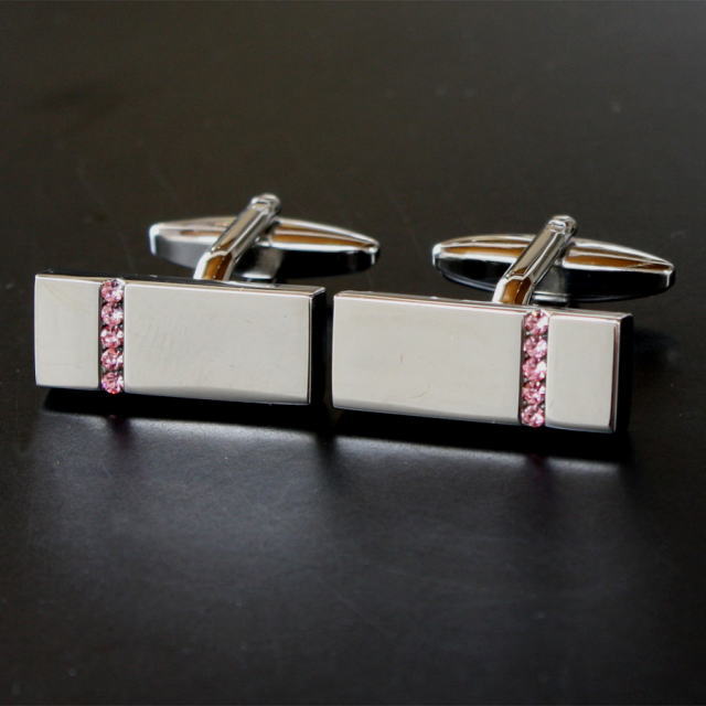 ピンクのクリスタルを5つ使用したカフスボタン。袖口から覗くスタイリッシュなカフスボタンに注目が集まりますよ♪♪自分用としてはもちろん、プレゼントとしても大変喜ばれますよベースカラーーシルバー素材ーbrass(真鍮)サイズー8x22mm【カフス・カフリンクス】 ※ケースは写真と異なる場合がございます。