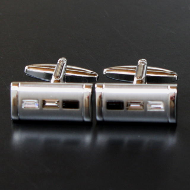 クリスタルを3つ使用したカフスボタン。ブラックのグラデーションが袖口を締まって見せますよ♪自分用としてはもちろん、プレゼントとしても大変喜ばれますよベースカラーーシルバー素材ーbrass(真鍮)サイズー10x20mm【カフス・カフリンクス】 ※ケースは写真と異なる場合がございます。