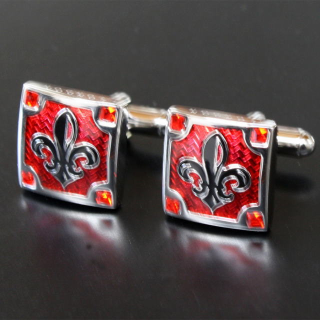 エリアル・トンプソンがデザインするスタイリッシュなカフスボタンThompson London は英国の高級デパート「ハロッズ」等でも販売されるカフリンクスブランド。こちらのカフス(カフリンクス)はユリの紋章をデザインした袖口にアクセントを加えるデザインとなっています。ユリの紋章は特にフランスで人気がありジャンヌ・ダルクが持っていた旗に刻まれていた紋章やフランス国王ルイ14世を出したブルボン家の紋章もこのユリの紋章でした。今でもフランス王家の紋章として使われており、フランスの国花もユリです。ケースもレザーで仕上げておりとってもゴージャス。プレゼントにもお勧めですよ。ベースカラーーシルバー素材ーb