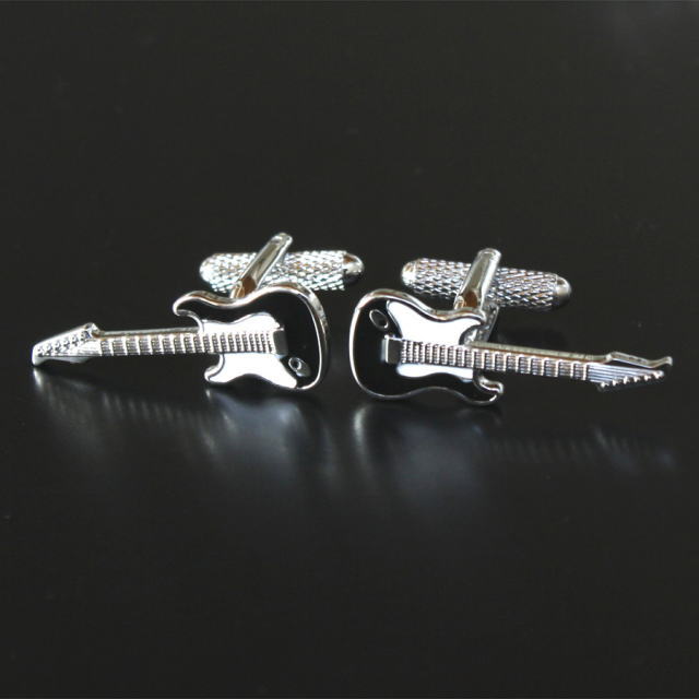 ストラトキャスターをモチーフにしたユニークなカフスボタン。袖口から覗くユニークなカフスボタンに注目が集まりますよ♪自分用としてはもちろん、プレゼントとしても大変喜ばれますよベースカラーーシルバー素材ークロームサイズー11x31mm 【カフス・カフリンクス】 ※ケースは写真と異なる場合がございます。