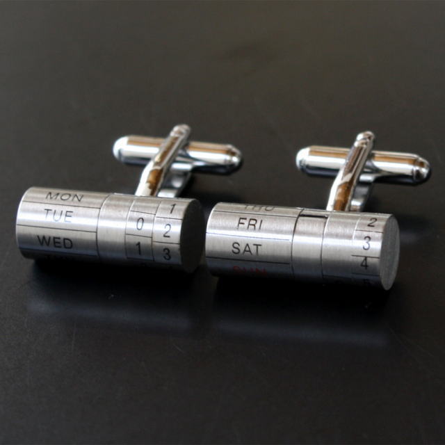 カレンダーをモチーフにしたユニークなカフスボタン実際に日付が動きますよ♪自分用としてはもちろん、プレゼントとしても大変喜ばれますよベースカラーーシルバー素材ーbrass(真鍮)サイズー9x21mm【カフス・カフリンクス】 ※ケースは写真と異なる場合がございます。
