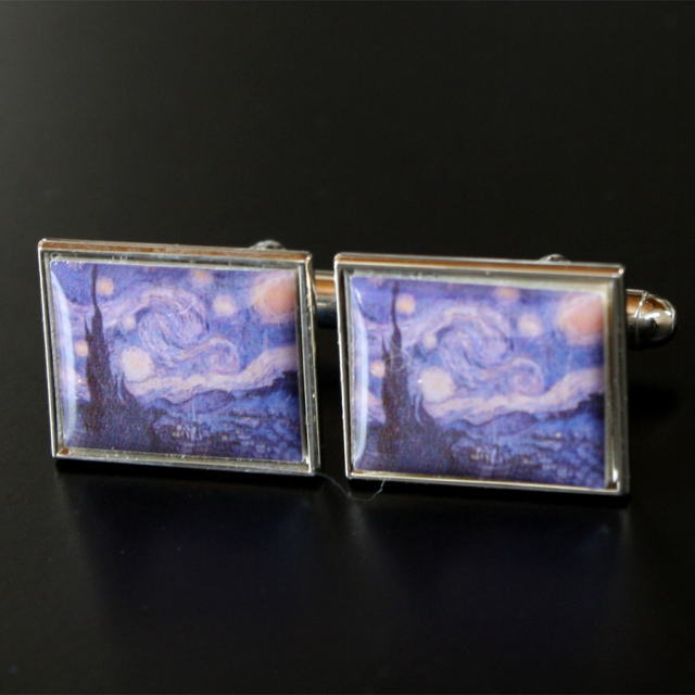 星月夜をモチーフにしたユニークなカフスボタン。フィンセント・ファン・ゴッホの代表作ですね♪袖口から覗くユニークなカフスボタンに注目が集まりますよ♪自分用としてはもちろん、プレゼントとしても大変喜ばれますよベースカラーーシルバー素材ーbrass(真鍮)サイズー14x18mm【カフス・カフリンクス】 ※ケースは写真と異なる場合がございます。