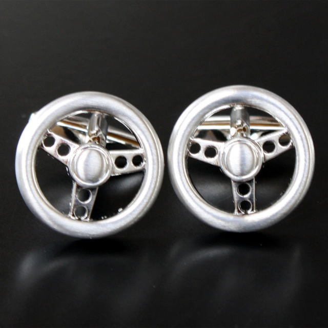 ハンドルをモチーフにしたユニークなカフスボタン遊び心があって袖口をアピールするにはピッタリですよ。自分用としてはもちろん、プレゼントとしても大変喜ばれますよベースカラーーシルバー素材ーbrass(真鍮)サイズー直径20mm【カフス・カフリンクス】 ※ケースは写真と異なる場合がございます。