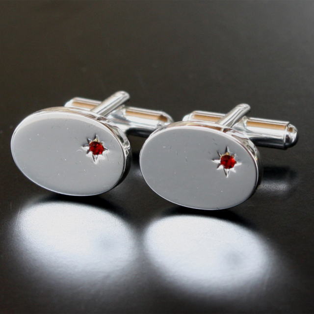 7月の誕生石でもあるルビーを使用したカフスボタン。袖口から覗くスタイリッシュなカフスボタンに注目が集まりますよ♪♪自分用としてはもちろん、プレゼントとしても大変喜ばれますよベースカラーーシルバー素材ーbrass(真鍮)サイズー12x17mm【カフス・カフリンクス】 ※ケースは写真と異なる場合がございます。
